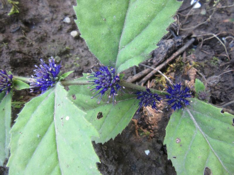 Ganz anders und für ich nicht so recht glaubhaft, dass es wirklich die gleiche Gattung ist: Veronicastrum villosulum. Im Frühling gepflanzt, hat sie zwei ewig lange Ranken gemacht, welche immer dünner wurden, ebenso wie das Laub ständig chlorotischer erschien. Eigentlich hatte ich die Pflanze zumindest für dieses Jahr abgeschrieben, heute leuchtete mich das dunkle Blau aber unvermittelt an. Mein spontaner Gedanke war "Delphinium `Polarnacht´...Vorzeigbar ist die Pflanze im Ganzen trotzdem nicht, muss sie glaube ich anders setzen und ihr Zeit geben. Besonders finde ich das Blühen an der Stängelbasis.