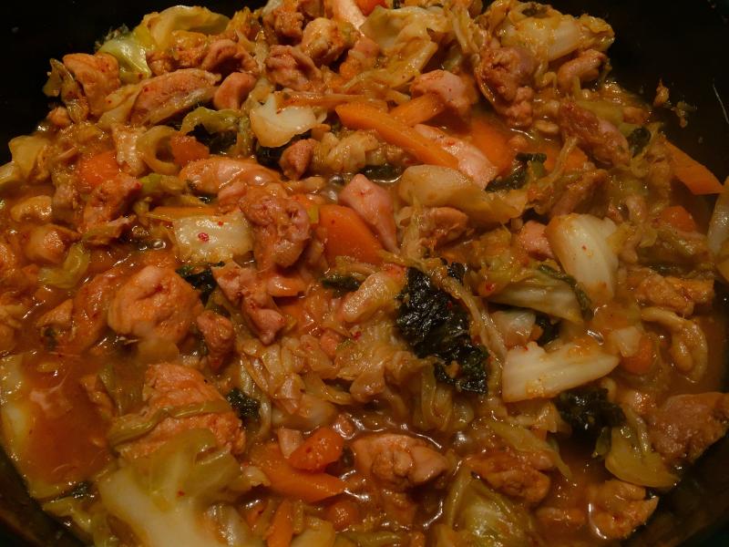 hier wird es demnächst dakgalbi: 닭갈비 geben (huhn mit gemüse), leider enkel&opa-bedingt massiv chilireduziert.