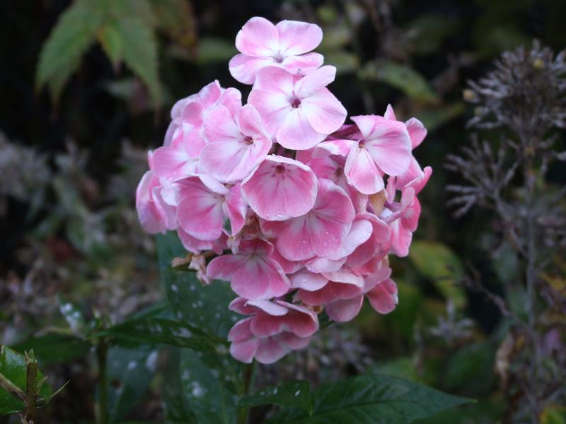 Heute konnte ich noch einmal Fotos im Garten meiner Freundin machen. Leider waren schon viele Phloxe verblüht, und fast alle hatten Mehltau bekommen.Dieser spätblühende Phlox ist wahrscheinlich eine Sorte, aber der Name ist wohl verlorengegangen. Er ähnelt sehr ´Spätsommer´, der aber nicht so kräftig gefärbte Knospen hat.