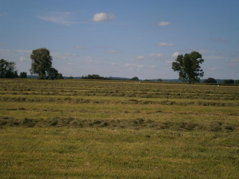 Erstmalig wurde hier die regelmäßige Mahd einer Feuchtwiese und damit ein Stopp der Verbuschung als Naturschutzausgleichsmaßnahme vergeben. Prompt fand sich ein Singlestorch ein, der dort offensichtlich ausreichend Futter findet. Die anderen Wiesen sind mittlerweile zu trocken für Würmer und Frösche. Nun müssten nur noch vorher als Ausgleichsmaßnahme gepflanzten Sträucher und Bäume wieder gerodet werden ...