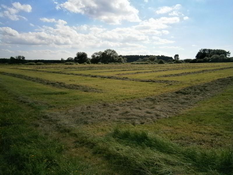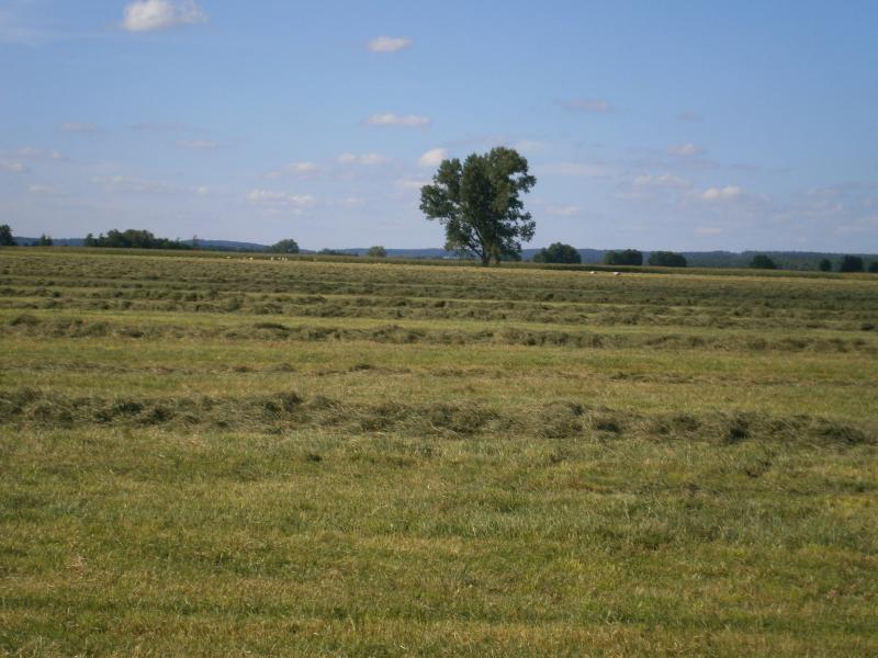 Ein ehemaliges Feuchtgebiet mit Wiesen im Nördlinger Ries, schon immer schwierig zu bewirtschaften, wo es Platz gibt für viele Wiesenbrüter und Störche.