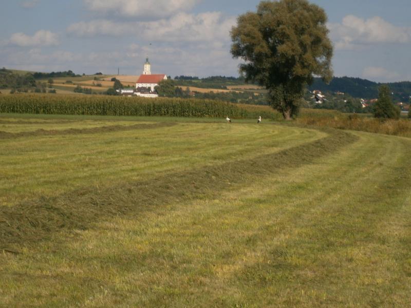 Ein ehemaliges Feuchtgebiet mit Wiesen im Nördlinger Ries, schon immer schwierig zu bewirtschaften, wo es Platz gibt für viele Wiesenbrüter und Störche.