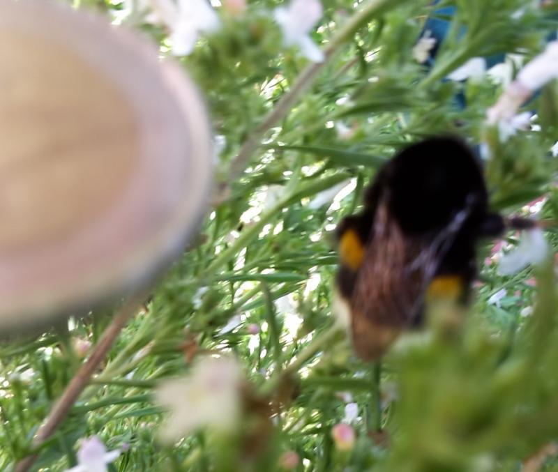 Dieses Jahr habe ich extrem große Hummeln im Garten. Wenn von denen eine angebrummt kommt, hört sich das an wie ein Lastenflugzeug. Habe heute mal versucht, eine zu knipsen. Die fand das aber nicht lustig und hat nicht still gehalten. Das runde Ding auf dem Bild ist ein 2-Euro Stück zum Größenvergleich.