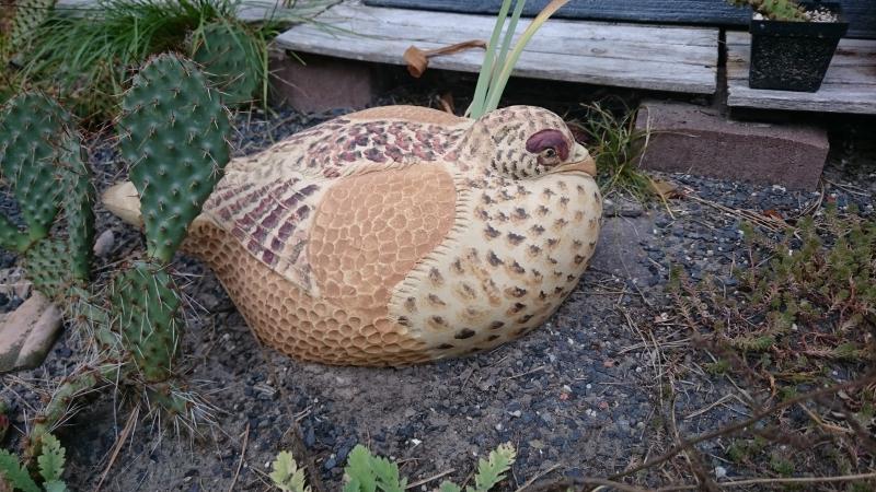 Im Gegenstück zum Schattenbeet hat sich ein Huhn niedergelassen.