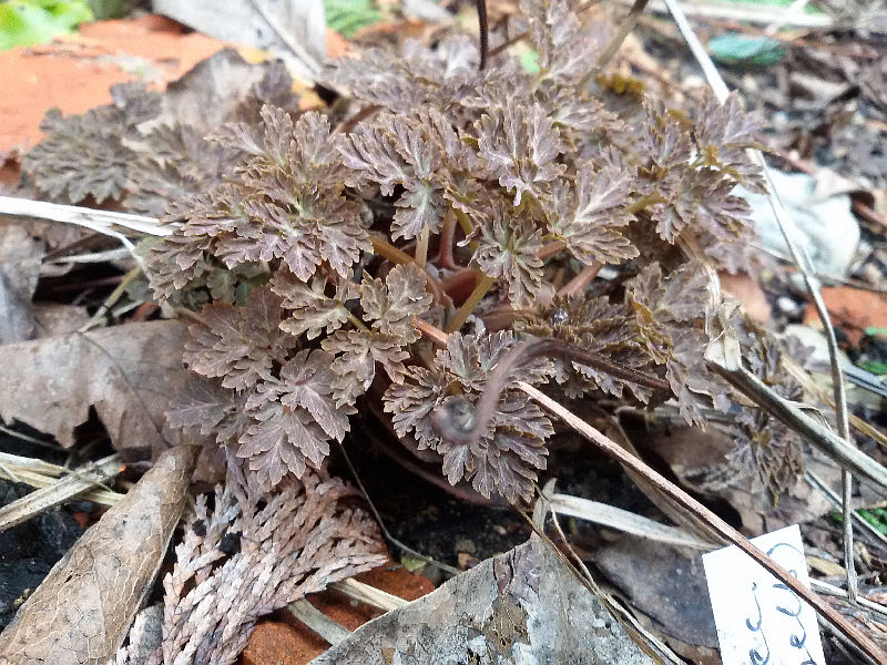 Schlängelnde Früchte hatte die Pflanze und ein Blütenstand hat sich in einen benachbarten Topf geschlängelt, die Sämlinge dort sehen eindeutig nach Corydalis aus. Ich werde sie der Schenkerin geben, denn bei ihr hat sich C. o. verabschiedet. Das zeitweise broncefarbene Laub, ganzjährig unterschiedlich gefärbt vorhanden, finde ich sehr zierend.
