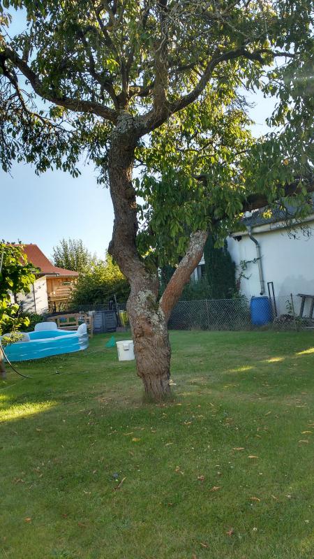 Aber wenn eh evtl. nicht so viel Platz hat und man eigentlich was vitales mit Ertrag haben will - dann geht kein WEg an der Säge vorbei. Wobei die Krone noch recht vital aussieht. Evtl. würde sich noch was machen lassen. Aber wenn der über Jahre nur ein schlecht tragendes Monstrum ist, das langsam hinübergeht - absägen.