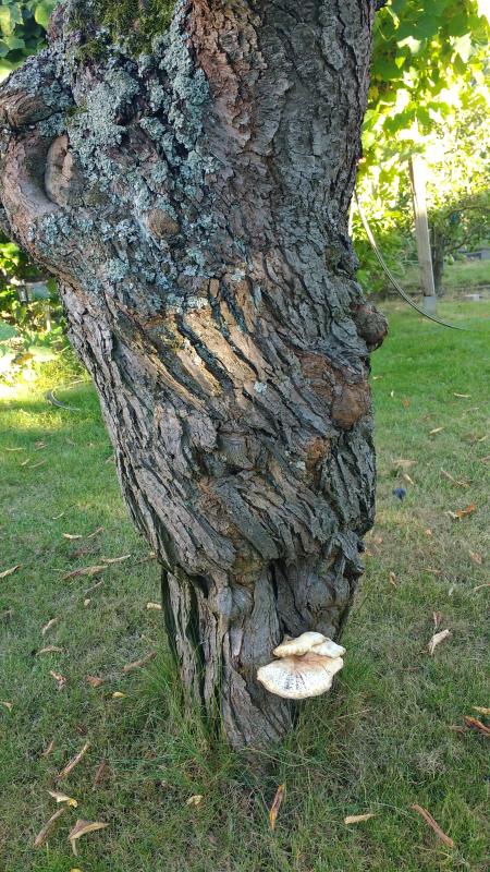 Bei meiner (12-jährigen) Hanita habe ich vor 3 Jahren einen Porling am Stammfuß entdeckt und mich mächtig erschrocken.