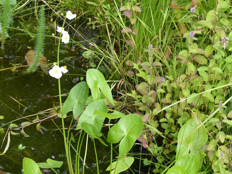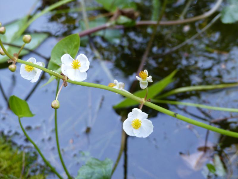 Zur Zeit blüht bei uns in der sogenannten Rosenbucht das Breitblättrige Pfeilkraut Sagittaria latifolia. Sagittaria sagittifolia, das schmalblättrige, ist schon durch.