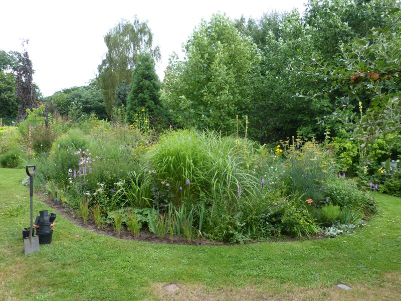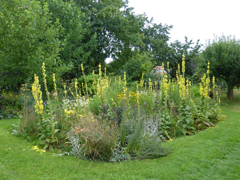 Aktuell sieht es ziemlich voll aus. Die Verbascum werde ich deutlich ausdünnen, nur einige für die Struktur und Aussaat stehen lassen. Die Miscanthus und Astern kommen ketzt langsam auf Höhe.