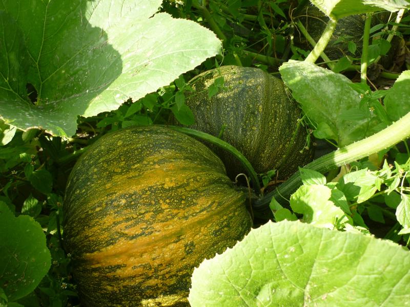 Ich habe mir von meinen Kürbissen in diesem Jahr deutlich mehr erhofft. Es ist wieder nicht viel dran. Bei mir sind es zwei Kürbishügel mit je 1,5 Schubkarren gut verrottetem Pferdemist drunter. Ich hatte ja schon immer Zweifel, ob dieses sehr abgelagerte Zeug überhaupt noch viel Power hat. Vielleicht ist das wirklich der Beweis dafür, dass das stimmt. Zusätzlich gedüngt habe ich nicht. Die Pflanzen sind gut gewachsen, aber der Fruchtansatz in gering und die Früchte bleiben klein. Heute früh habe ich einen männerfaustgroßen Hokkaido abgemacht, vllt. zwei sind noch dran - das waren vier Pflanzen....