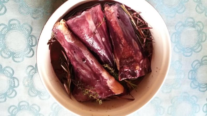 Am Sonntag hatten GG und ich marinierte geschmorte Lammhaxen mit Gartenbohnen und Ofenkartoffeln.