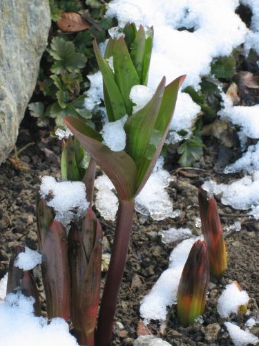 Heute morgen: Fritillaria persica 5 cm, Fritillaria stenanthera 8 cm - beides natürlich outdoor!