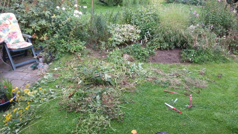 Ich habe noch am Sonnabend den Kampf gegen die "Spätsommerverwahrlosung" im Terassenbeet gewonnen. Erstmalig !!! habe ich es somit geschafft das Beet zum Sommerende nochmal gründlich aufzuräumen. Bisher musste das immer bis zum Frühling warten. Ein gutes Gefühl - es wird besser...