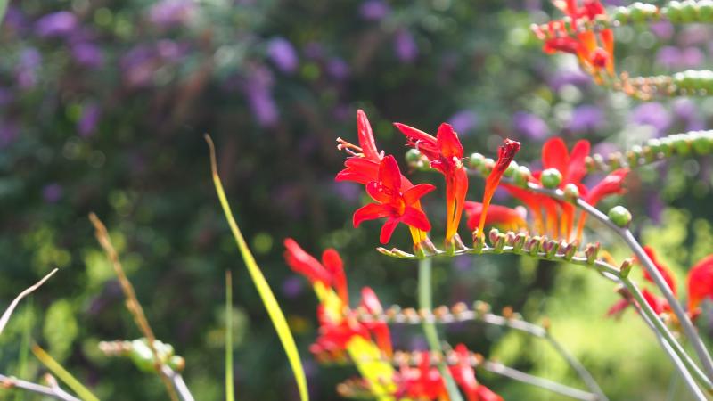 und hier Crocosmia 'Lucifer'. Vor Panicum 'Cloud Nine'