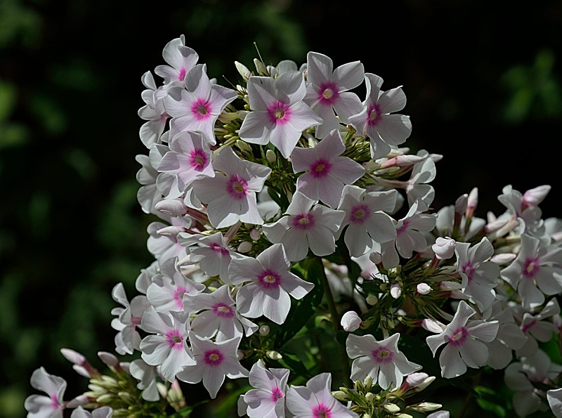 Trotz Spätfrösten und heftigem Hagel Ende Mai und den viel zu trockenen Monaten Juni/Juli/August war/ist es ein gutes PhloxJahr :D Einen kleinen Eindruck bekommt man von diesem Bild, das einen Ausschnitt des im letzten Herbst neu angelegten PhloxBeetes zeigt. Alle Planzen wurden aufgenommen und neu gesetzt. Verteilt wurden sie nach der Farbe der neuen Basisknospen, das heißt in drei Gruppen: Grün, Hellrot, Dunkelrot. Die Hellen ergeben wirklich zuverlässig weiße Blüten. Das heißt, ich bin ein wenig eigenwillig vorgegangen, da ich ich ja nahezu ausschließlich Sämlinge habe, die im Laufe der Jahre aus vielleicht drei oder vier Ablegern entstanden sind, die ich vor rund 25-30 Jahren aus Bonn mitgenommen/bekommen habe...