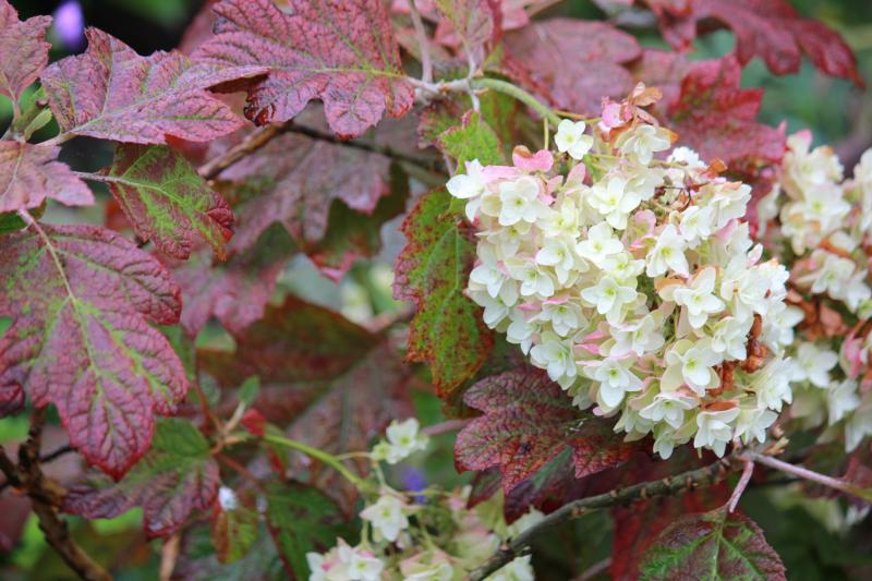 Hier im Garten macht sich der Herbst auch schon an einigen Stellen bemerkbar, z.B im Hortensienbeet. Hydrangea quercifolia zeigt schon herrliche Farben an den Blättern und die Blüten beginnen zu trocknen...