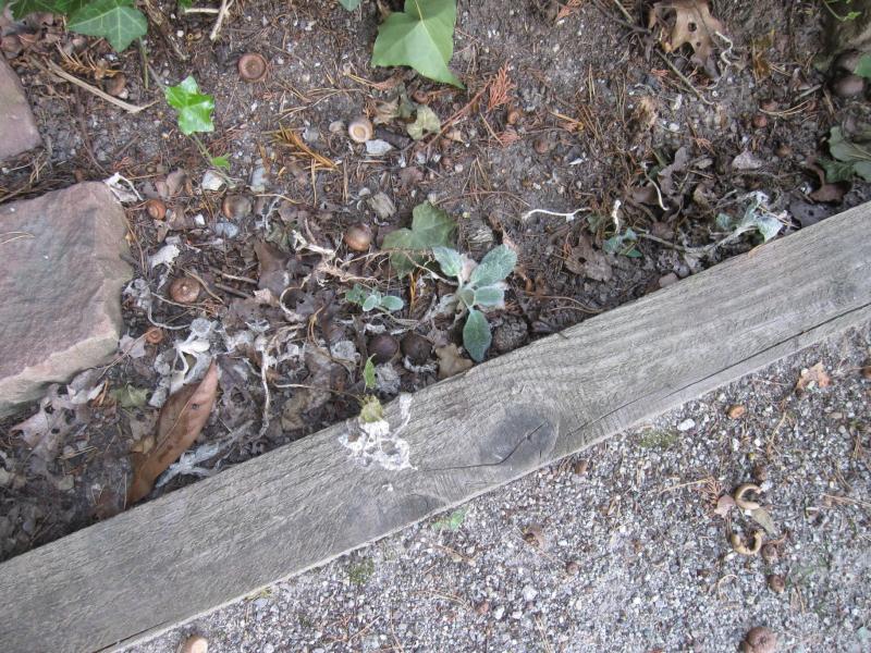 Inzwischen bin ich nicht mehr so überzeugt, von meiner Idee. Hier die Stachys im Vergleich zum banalen Efeu. Beide nicht gewässert.