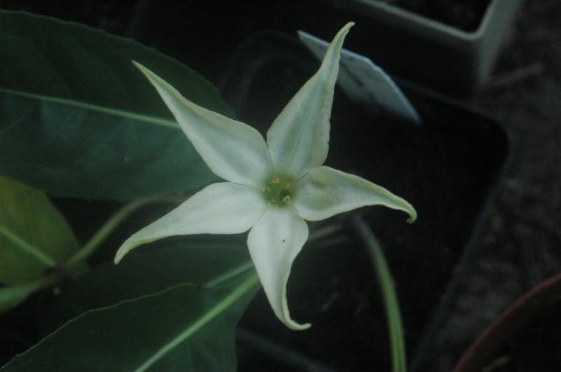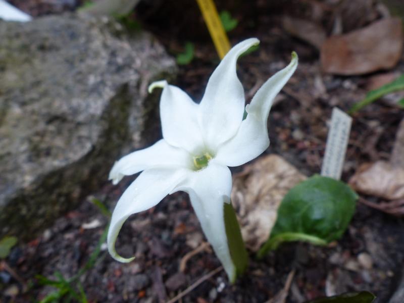 Meine blüht jetzt auch ganz unerwartet. Sie ist ein kleines Pflänzchen im Topf, daher hatte ich nicht mit einer Blüte gerechnet. Sie duftet etwas in Richtung Jasmin.