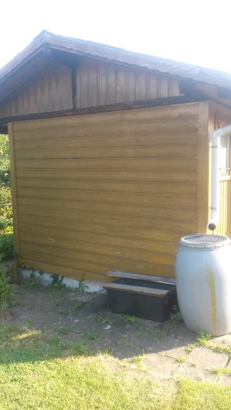 diese kahle Wand an der Südwestwand der Laube soll schöner werden. Nachdem ich einen Baum gefällt hatte, kommt hier ab etwa 13 Uhr volle Sonne hin. Der Boden ist lehmig und ich habe folgende Wünsche an die Rose: