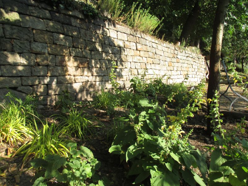 Das Beet am Sitzplatz wird im Herbst noch weiter bepflanzt und auch an der Mauer entlang erweitert.