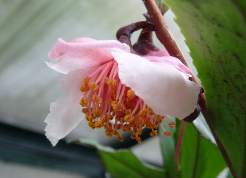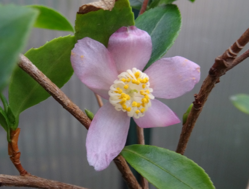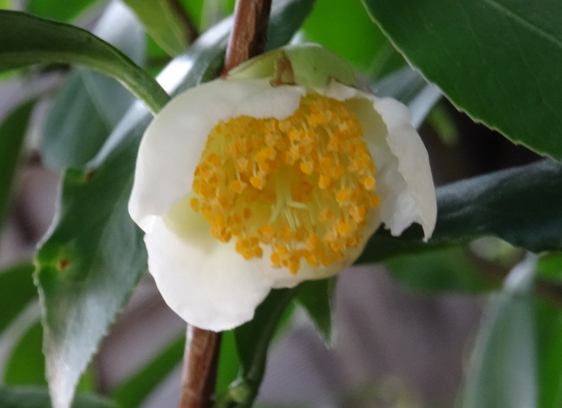 Mit etwa 1 Monat Verspätung hat vor ein paar Tagen die ausgepflanzte C. sinensis Beni Bana (der Rote Tee) die ersten ihrer zahlreichen Miniknospen geöffnet.