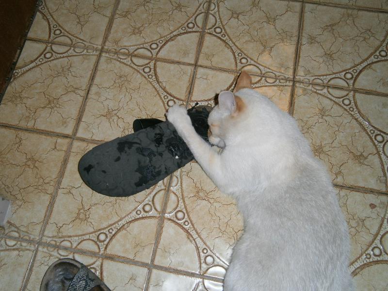 was an den alten Latschen so toll schmeckt, daß er sie so abschleckt... ;D