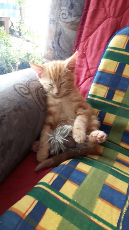 Dieses Spielzeug, was der Rote auf dem Schoß hat ist von Krümel. Haben die 4 vom letzten Jahr bekommen. Bis auf eine kleine Maus gibts die alle noch. Diese eine besagte Maus haben wir dann vor kurzem entsorgt, nachdem der Rote sie mit ins Katzenklo genommen hat und draufgepupst hat ::)