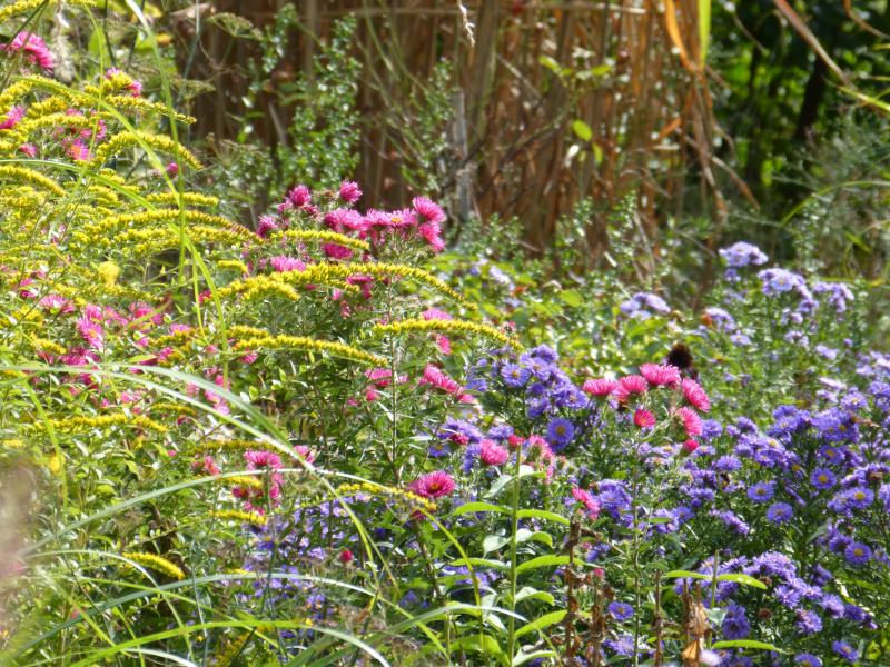 Die Astern haben nun Hochsaison - Solidago 'Fireworks' mischt fleißig mit.