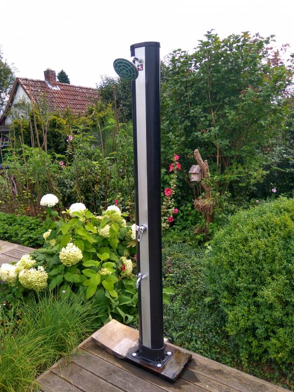 Ich habe nur ne Gartendusche draußen, ist der Schlauch aufgeheizt, gibt es auch warmes Wasser - und schön versteckt das Ganze....in diesem Jahr hält es sich mit dem draußen Duschen bisher in Grenzen....