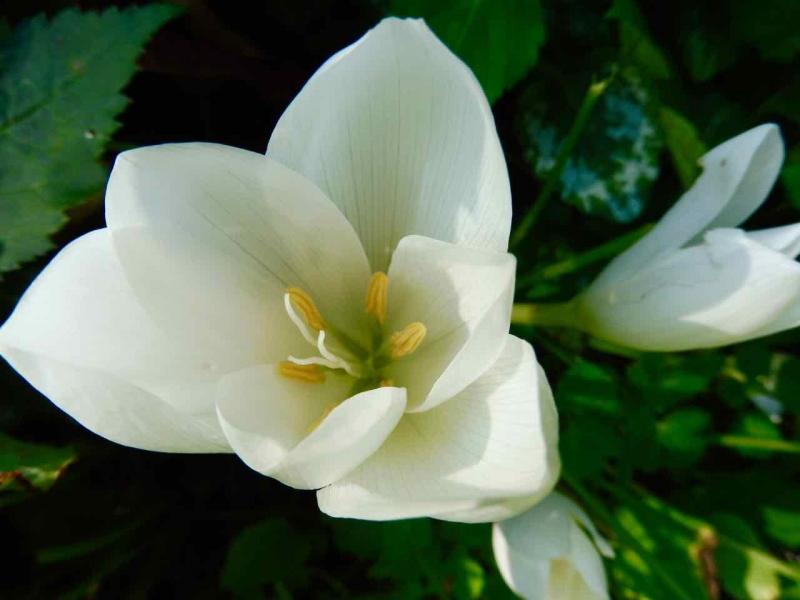 Colchicum speciosum 'Album' kommt etwas spät, aber zuverlässig jedes Jahr wieder; bis heute hat sie fünf Blüten, aber es werden noch sicher mehr kommen: