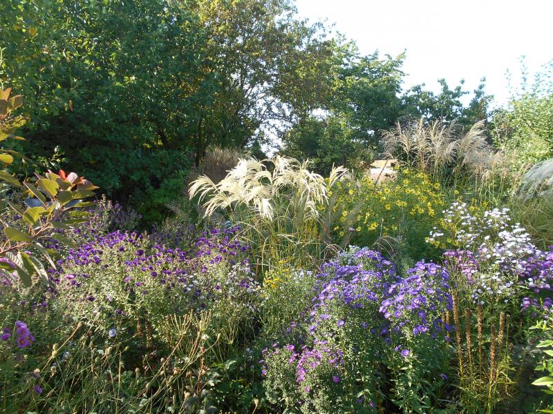 Meine Fotos sind nicht wirklich zum Vorzeigen. Ich habe vor allem versucht, die Hornissen zu fotografieren, mit mässigem Erfolg und sonst ein paar Impressionen mit den vielen Astern. Ich brauche mehr Astern in meinem Garten! Der Garten ist so schön üppig, mit den vielen Blüten, und dann noch bei dem perfekten Herbstsonnenschein.