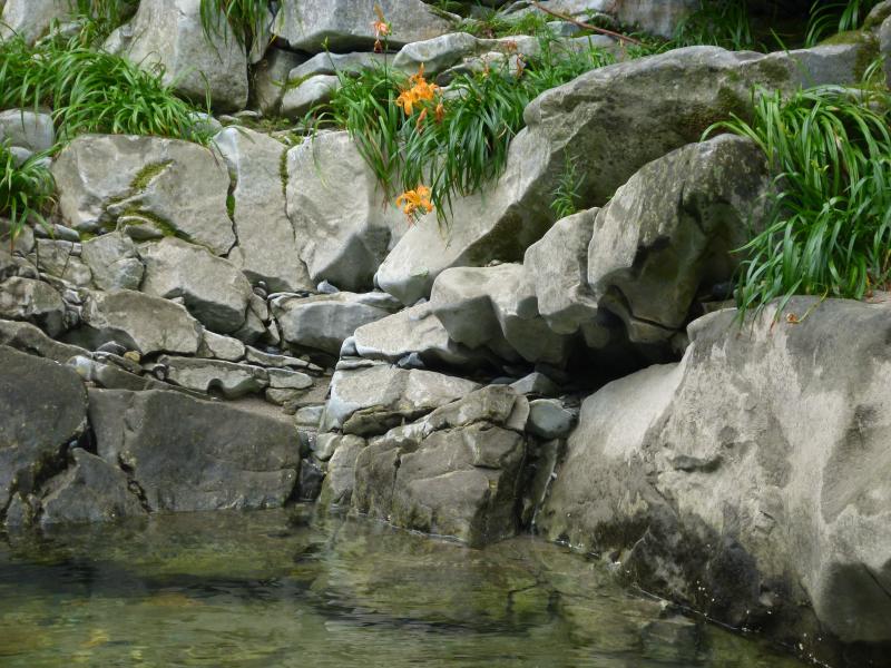 Hemerocallis fulva kennen wir im Garten als triploide, wuchernde Pflanze, die nicht unbedingt jeder Sammler im Garten haben möchte. Aber sieht sie nicht in der Wildnis als zarteres diploides Gewächs am Flussufer zwischen Steinen total schön aus?