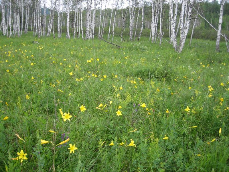 Wir bleiben noch bei Hemerocallis in Asien: eine Wiese mit Hemerocallis minor am Südrand der Taiga, nördliche Mongolei