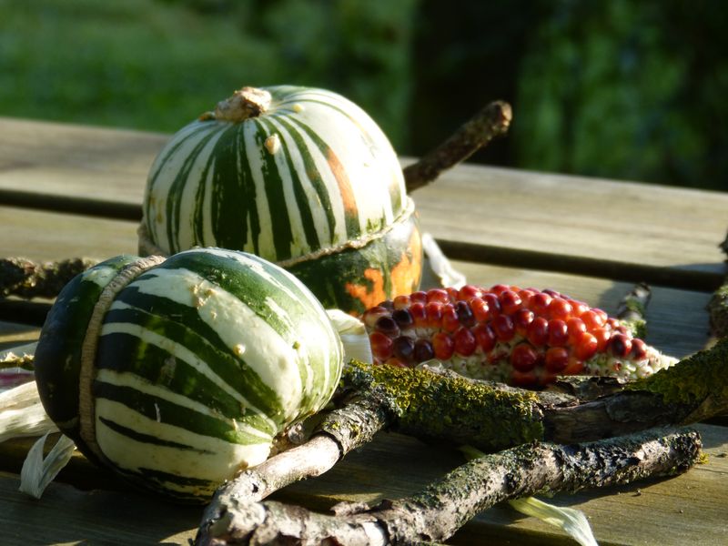 Ich zeige hier mal den Erntedankaltar an einem Dorffest in der Turnhalle. Ich habe allerdings weder mitgestaltet noch zu den Erntewaren beigetragen. Ich fand es aber sehr schön.