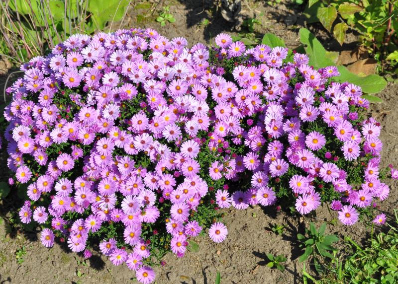 Bei der Solidago handelt es sich um 'Fireworks'. Bei der Kissenaster bin ich nicht ganz sicher, es müsste sich aber um 'Rosenwichtel' handeln. Die war mal tief in einem Beet verschwunden. Im Frühjahr fand ich noch einige Resttriebe und verteilte sie am (neuen) Beetrand. Nahezu aus jedem Fitzelchen wuchs eine herrliche Blütenkugel. :)