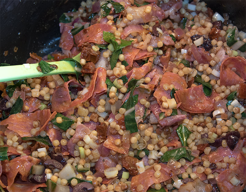 Heute gab es Fregola Sarda und viel 'Reingeschnipsel'. lecker