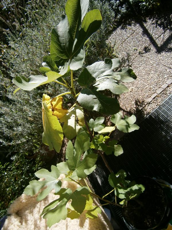 Das ist eine neue Feige, aus einem Steckling aus Ungarn. Sie soll gelbe Früchte und rotes Fruchtfleisch haben, wir werden sehen.