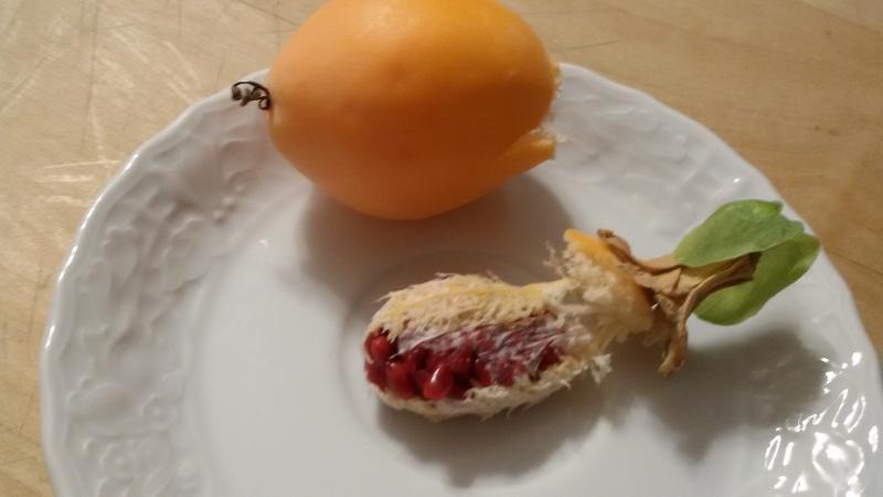 Die Größe haben die Samenkapseln meiner nie erreicht. Beim Öffnen waren ein paar wenige Samen drin, aber eher nicht in so einer Granatapfelumhüllung wie bei dir. Die Frucht hatte innen eher so ein Wattegewebe, war aber größtenteils leer.