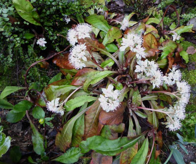 Von den Schattenstauden als erste blüht bei mir immer Chrysosplenium macrophyllum, mehr oder weniger ab Januar, eine Art Winterblüher ;D