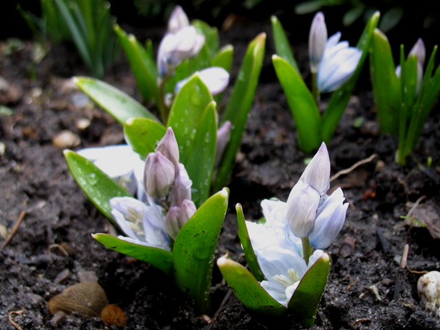 Bei mir haben die Puschkinien das Blühen angefangen. Scilla und Chionodoxa stehen in den Startlöchern.