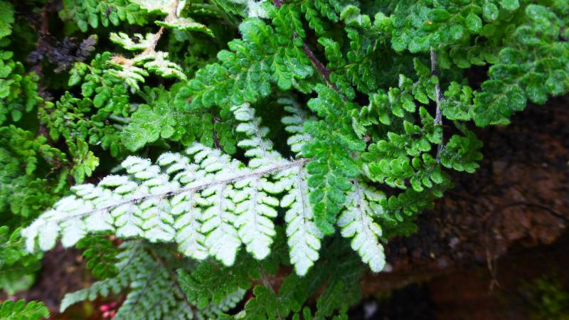 Bei den beiden bin ich mir ziemlich sicher, dass es junge Cyathea sind, die anderen sahen in der Größe ähnlich aus, mit der starken Behaarung, der fast dreifachen Fiederung und den etwas abgewinkelten Blättern.