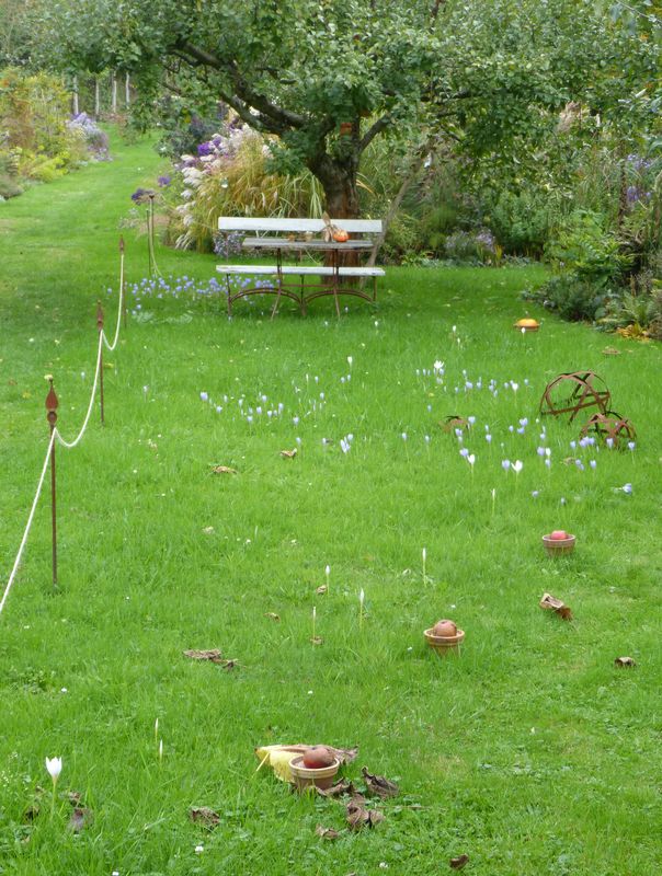 Hier beginnen die Crocus speciosus endlich mit der Blüte. Die Krokusse warteten offensichtlich auf den Regen. Sogar im Park habe ich ein paar entdeckt, aber wo sie stehen, verrate ich nicht.