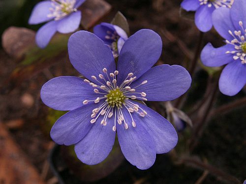 Ich wünschte es von der Mitte her nicht so symmetrisch und die Hyazinthe im Hintergrund etwas unschärfer.EBV – nö, so möchte ich gestalterisch nicht eingreifen, die Lustmomente beim Aufspüren von Motiven und bei den Gestaltungsversuchen reichen mir noch. ;)Da ich bei Nahaufnahmen eigentlich auch immer den Hintergrund mit einbeziehe und mein Augenmerk darauf bei der Motivsuche richte, hat mich das farbenfrohe Arrangement von Primeln und Traubenhyazinthen, bzw. Iris und Primeln in Nachbars Garten selbstverständlich magisch angezogen..zurückhaltendere Nachbarschaft:Winterling vor Stiefmütterchen