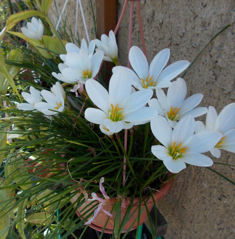 Fangen wir mal mit Zephyranthes candida an. Das Foto ist vom 29.9., aber gerade heute ist nochmal ein Schwung neuer Blüten aufgeblüht, also ist das im Thread "Was blüht im Oktober" nicht ganz falsch ;)