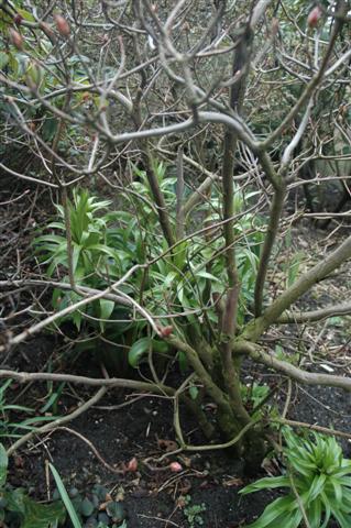 Fritillaria raddeana ist geradezu aus der Erde herausgebrochen (ihr Etikett und etliches andere wurden einfach herausgedrückt!