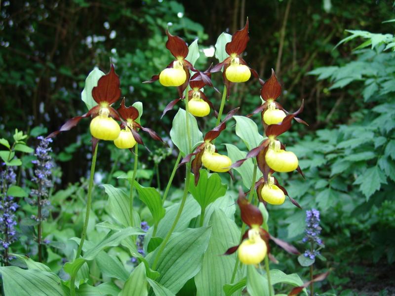Wir haben C. calceolus, an drei Stellen. An einer Stelle rechts neben dem sogenannten Alpinum steht sie seit 2002. Allerdings vollschattig, vor einem 'Knallerbsenstrauch'. Sie blüht sehr fleißig. Die anderen sind nicht so toll, wir haben uns bei der Pflanzung nicht so viel Mühe gegeben wie bei der ersten. Wir haben vorschriftsmäßig gekalkt und so weiter. Mit dem Verkäufer Herrn Kernstein habe ich sehr oft telefoniert und mir Rat geholt.