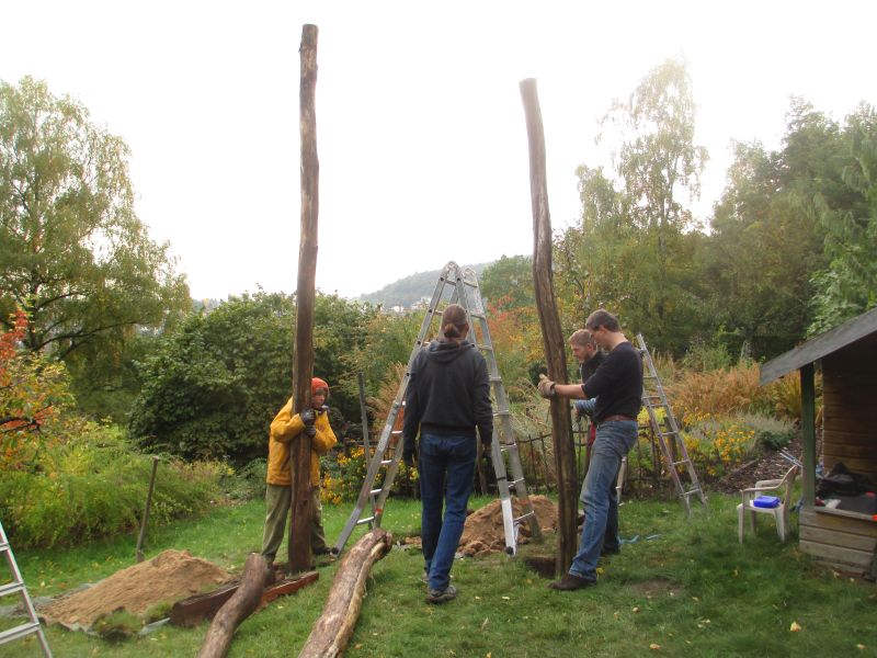 Die beiden Pfostenpaare werden nun etwas zueinander geneigt.