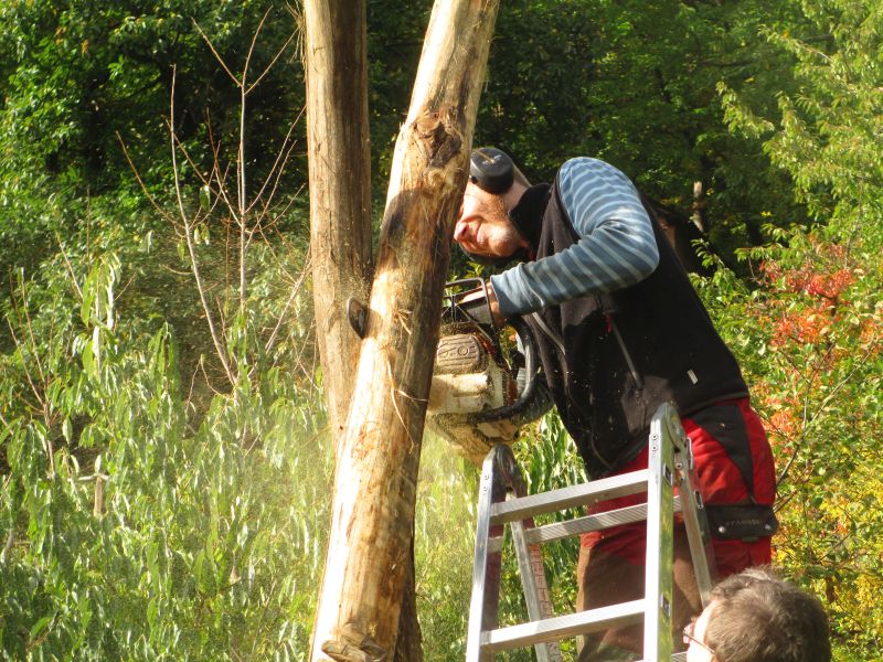 Während der Fachmann die Filigaranarbeiten mit der Kettensäge erledigt.