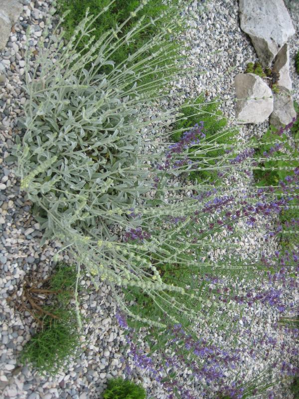 Im Gegensatz zur Katrin bin ich leider kein Talent im Fotografieren. Aber dennoch ein Bild aus den Anfängen. Die Salvia verticilliata war eigentlich wunderbar und brachte Fülle und eine lange Blütezeit. Leider haben dann irgendwann die Schnecken aus dem benachbarten Beet entdeckt, dass es auch im Kiesbeet eine leckere Pflanze gibt. Seitdem kämpen sie jedes Jahr ums Überleben und ein paar fehlen schon.
