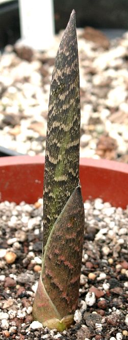 ...als spec. erhalten, aus samen gezogen und erstmals letztes jahr geblüht....könnte auch ein amurense sein. im garten habe ich 2 formen des amurense...grüne spatha mit weissen streifen und grünem spatha-"deckel" (die meisten) und welche, bei denen die innenseite des spatha-deckels braun ist.norbert